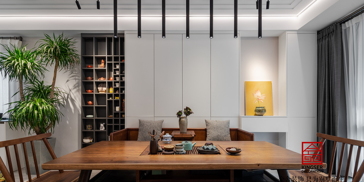 禪韻流水,樹影茶香,歸家后將喧囂的一切拋棄隔絕。整體空間利用合理,以實用性為前提,設(shè)計的真諦是走進(jìn)生活