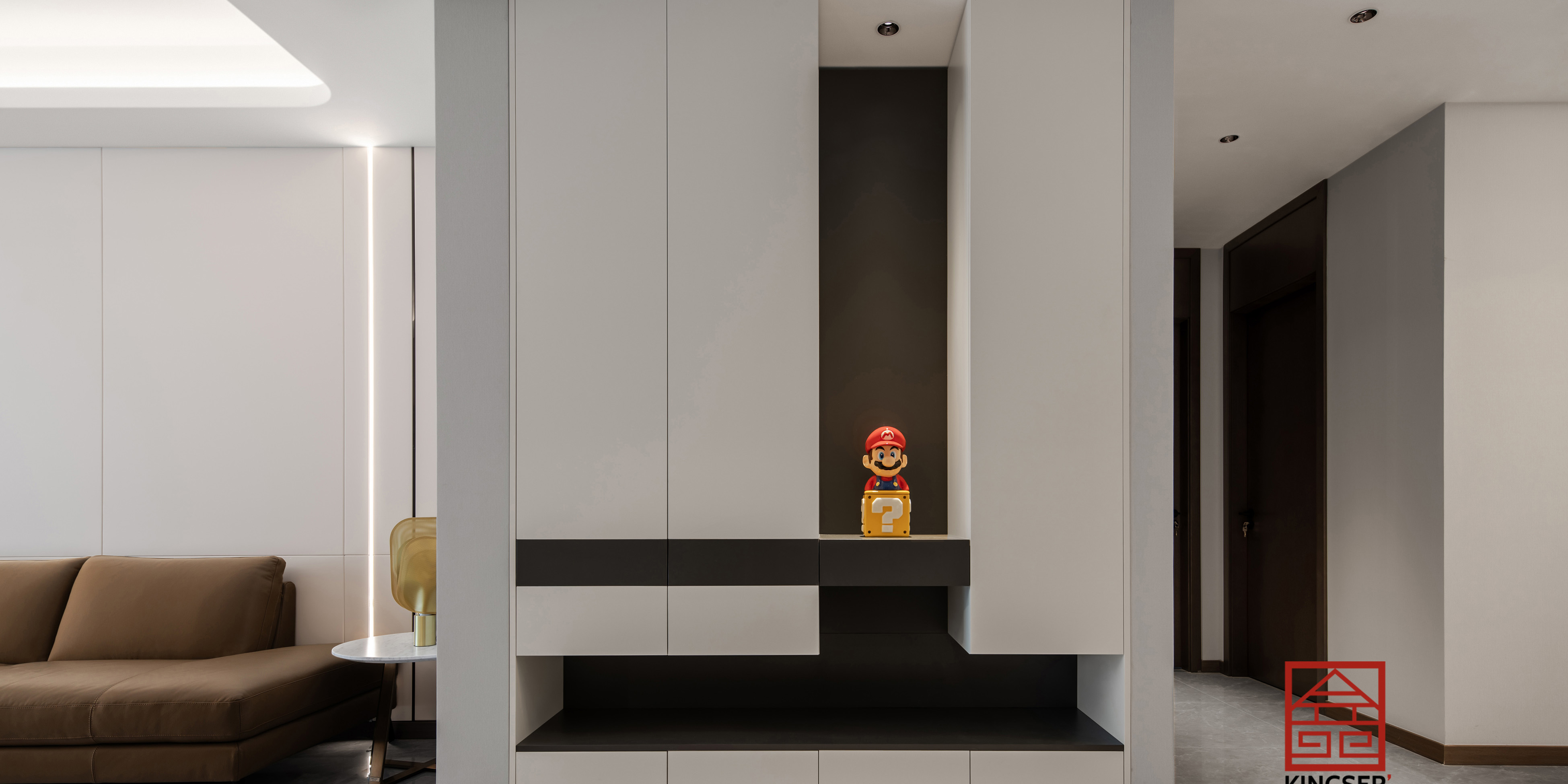 本案在配色上深邃又冷靜,完全契合業(yè)主對于新家的設(shè)定,設(shè)計師將居住者的需求與情懷融于一體,賦予空間更加鮮明的性格